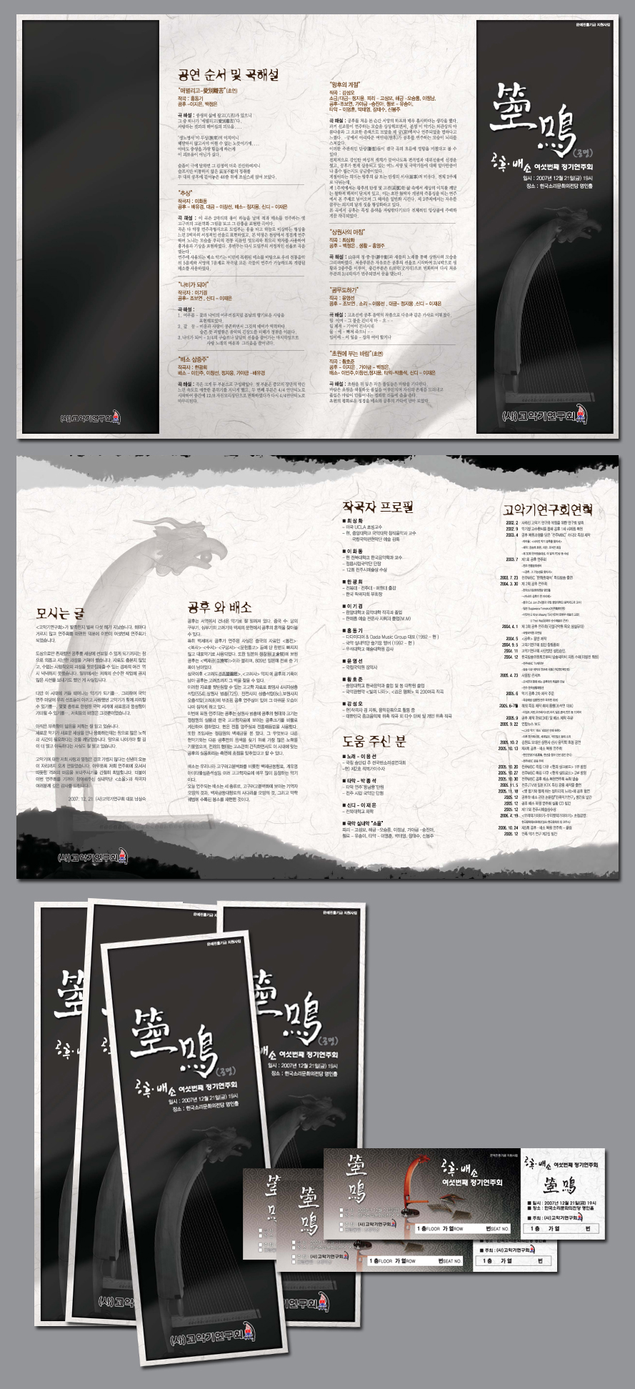 연주회면.. 좀 밣게 가시지 그랬어요; 색상만 신경 써 주셔도 한결 더 낳아보였을텐데^^ㅎㅎ 밣은 그낌에 적절하게 금박넣어주면.. 더 좋을것 같아요~ 글이 많으니.. 제생각에는 공연 순서와 긴 내용설명은 따로 전단으로 빼시구요. 초대장에 필요한 간결한 내용으로 정리하는게 더 멋스러울듯.. 안그래도 봉투안에 초대장넣어서 갈거같은데욤~ 짧은 제생각이에요././ㅎㅎㅎㅎ