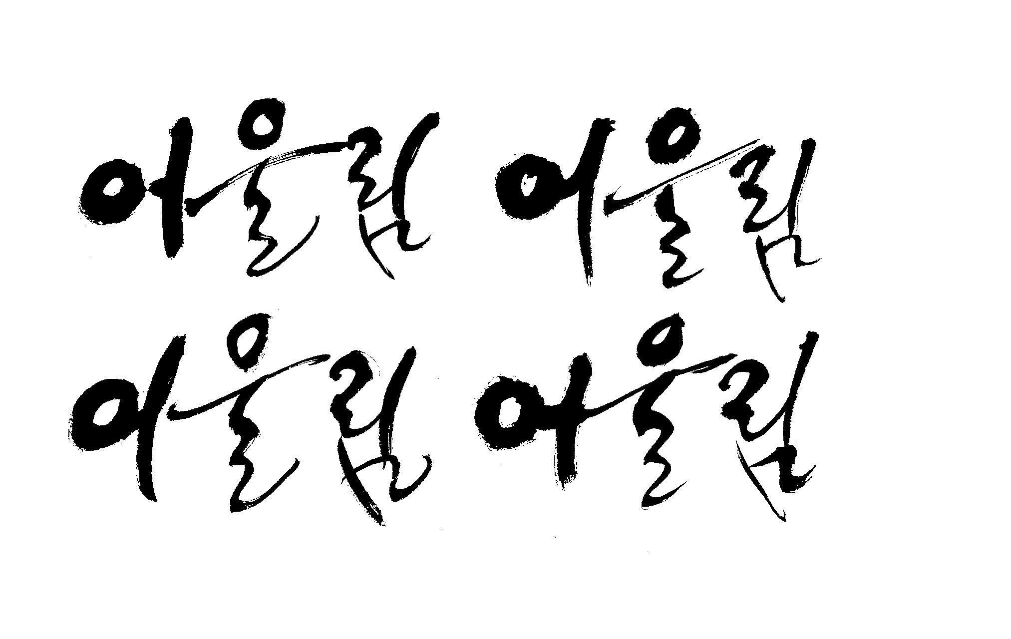 켈리 부탁좀 드릴께요~ 김철호 일반 0 11450 2009.01.14 10:49 > > > > > 책표지에 나갈 글씨로 '어울림'이란 켈리를 쓰고싶은데요... > > 도와주세요~ > > > 좋은 글이라서... > 긴....습작시간이 있었지만 > 결과물이 왜소하네요 > 유용하게 쓰시길... >