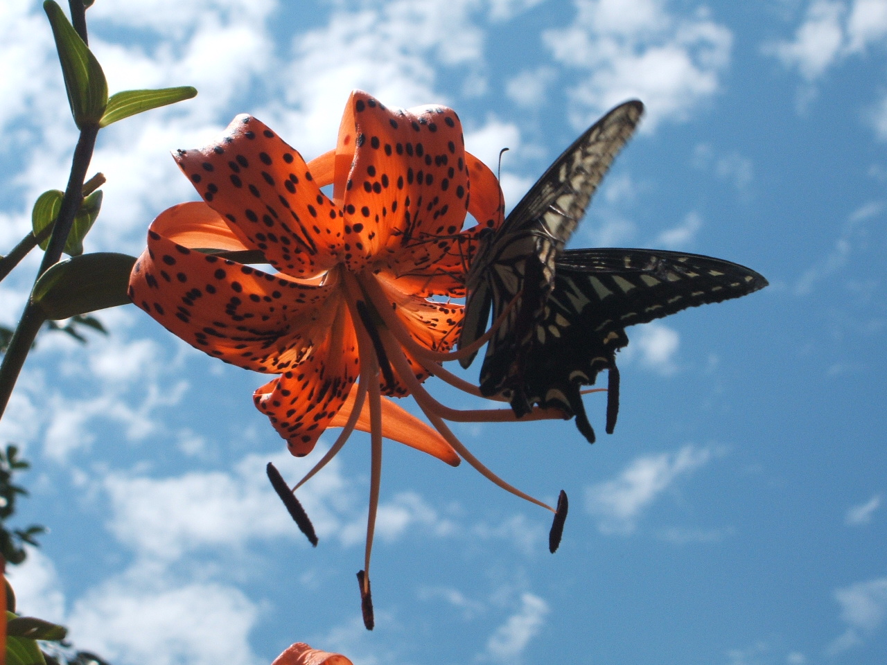 마당에 핀 나리꽃에 예쁜 나비가 날아왔네요.